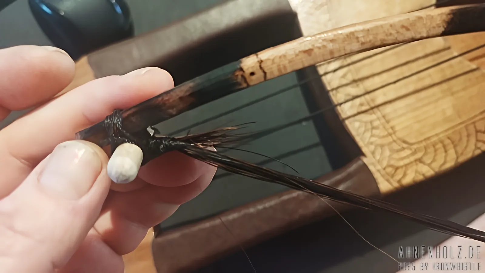 Talharpas im Spiel finden sich bei Bands wie Heilung, Nytt Land, A Tergo Lupi oder auch Wardruna sehr häufig. Sie bilden dort meist einen Hintergrundklang, der einfach die Atmosphäre dieser wunderbaren Musik ausmacht. Kann ich selbst spielen? Ein wenig, aber es ist noch sehr stark ausbaufähig. Aber hey, ich baue die Instrumente weil es mir Freude macht, auch wenn es schön wäre mit dem Bau gleich eine gewisse Meisterschaft im Spiel zu entwickeln. Aber dass ist leider nicht der Fall.